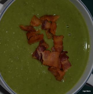 Klip baconskiverne i små stykker og steg på panden. Dryp af på fedtsugende papir.