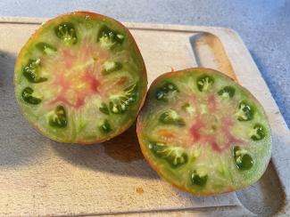 Stor, skøn bøftomat. Smagen er frugtagtig og kraftig, fantastisk lækker og saftig.