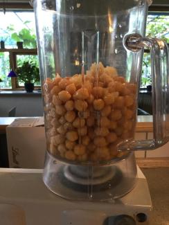 kikærter: Koges i frisk vand 45 min - 1 time. Afkøles. (Gem lidt kogevand).