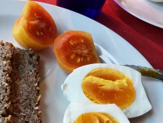 Jeg var ikke imponeret over smagen af Ponderosa-tomaterne i efteråret. Der var mange andre tomater med mere smæk på smagen. Ponderosa er en vinter/gemmetomat - og her sidst i december, er jeg pludselig meget mere begejstret.