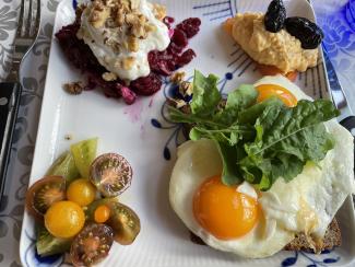Et par spejlæg og lidt frisk rucola - så er man mæt og klar til en “morfar”.