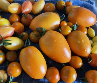 6) Sungold - orange cherry, men god, krydret tomatsmag. Middel udbytte. Lang sæson. Ingen revnedannelse.