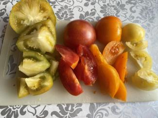 29. okt 2021 - 08:48 Billede Vinger/gemmetomaterne er plukket umodne - og hængt til eftermodning i væksthuset. fra højre: Ponderosa, Longkeeper, Grøn Vinter - der er mest smag i Grøn Vinter.