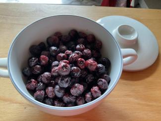 Nu et forsøg med tørrede blåbær….