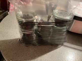 Der er lagt 1/2 liter blanchere bær i hver af de 5 bakker.
