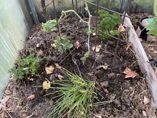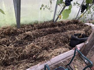 Så er de første af de vinterhårdføre løg sat: rødløg i 1’er-drivhuset. Så er der nye, lækre løg i maj-juni 25.