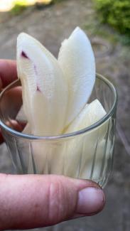 En dejlig rodfrugt med frugtsmag. Dyrkes som kartofler , men skal have det lidt lunere. Rødderne graves op, når toppen visner. Rødderne gemmes køligt - og er spiseklar midt på vinteren/først på foråret. Smagen udvikler sig under lagringen.