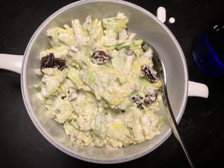27. feb 2026 - 07:58 Billede Lidt rester i køleskabet blev til en skøn dressing til spidskål: en rest feta og en rest mascarpone - rørt op med lidt vand, lidt sennep og lidt af krydderier “cabbage carma”.