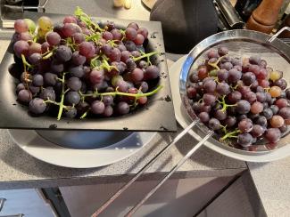 Pil druerne af klaserne og skyl en håndfuld ad gangen.