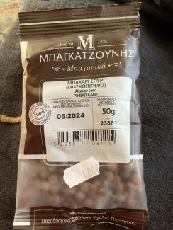 Til et stort fad: 5 hele allehånde, mellemstort fed slanghvidløg, 4 små kviste merian.