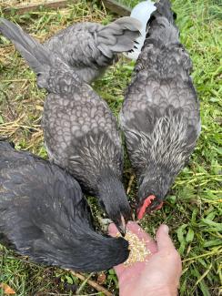 - overskud fra køkkenhaven er guf for hønsene. Jo mere grønt, de lever, jo flottere æg.