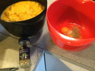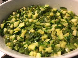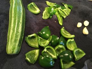 Sauteret hvidløg, squash og pimentpeber, salt, peber, herbes de Provence.
