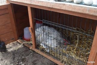 Nu synes hønen Millie, at det er forår - hun er skruk. I den anledning har hun fået en et-værelses med gårdhave.