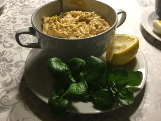 Vores unge høns er begyndt at lægge pænt med æg, så til brøndkarsen er der tunsalat med friskrørt mayo - og så frisk brød, bagt med bl.a. revet rødbede og mælkekefir.
