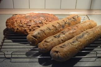 Brødet er lavet af halvdelen af dejen, de 3 flutes af resten.