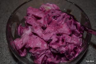 Bland æble og rødbede forsigtigt i cremen.